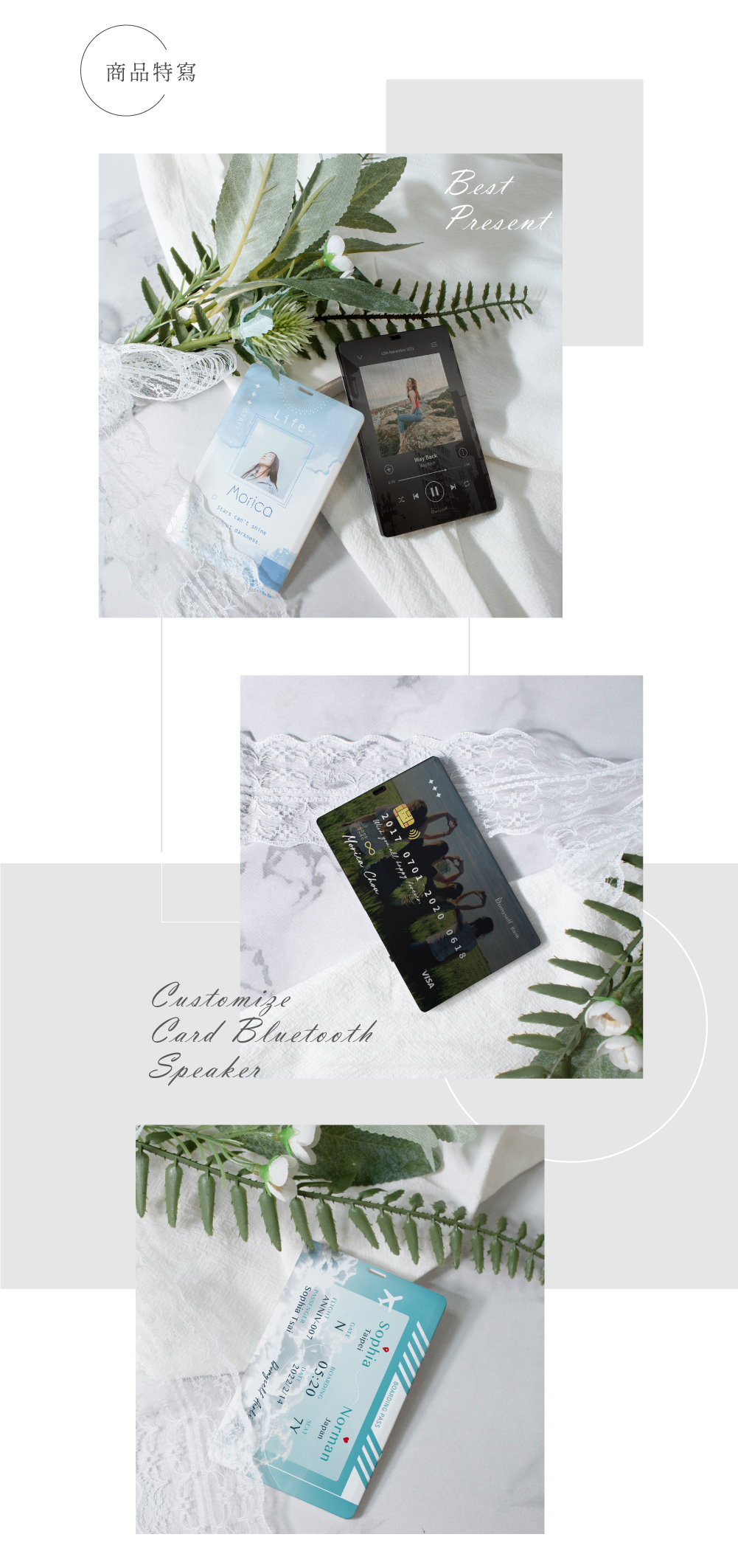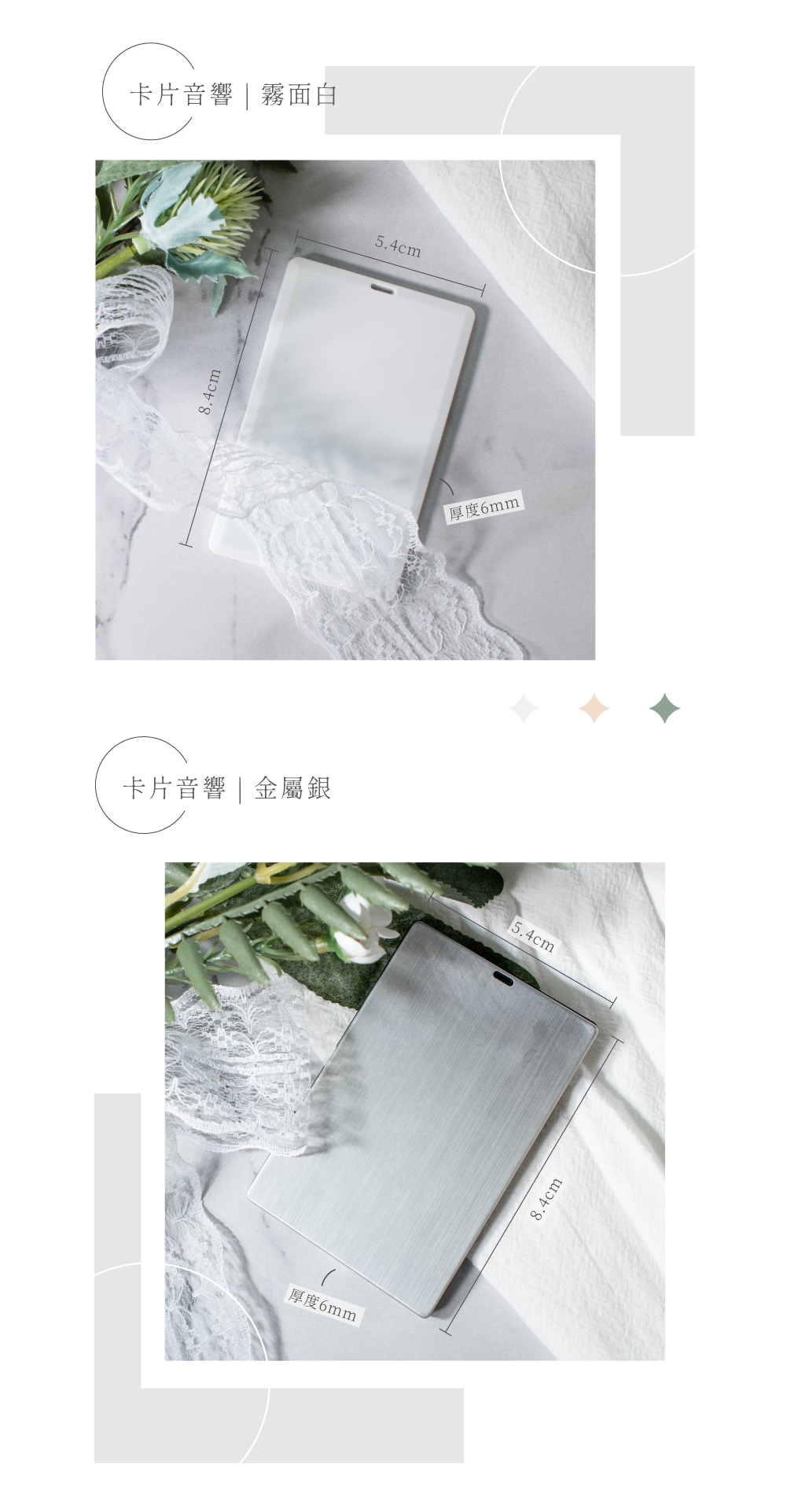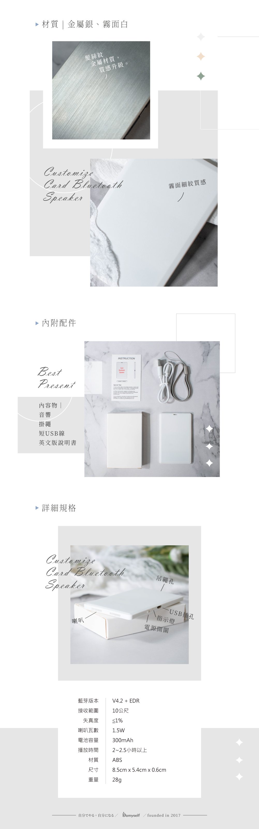 名稱|客製化 ◦ 藍芽音響 | 卡片式音響 ◦ 霧面白 / 金屬銀