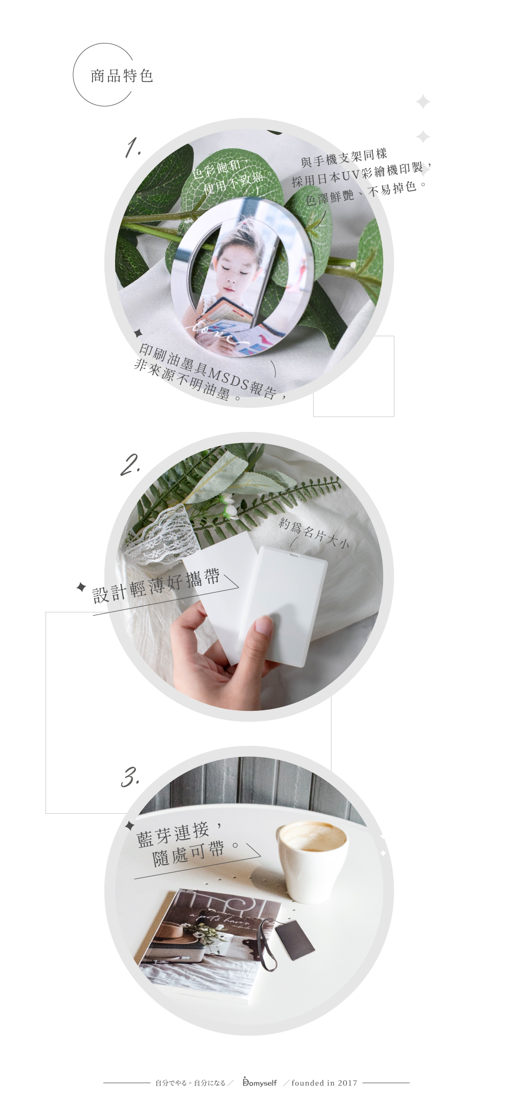 ① 彩色印刷:採用日本UV彩繪機印製,色澤鮮艷、不易掉色,絕非消耗品品質