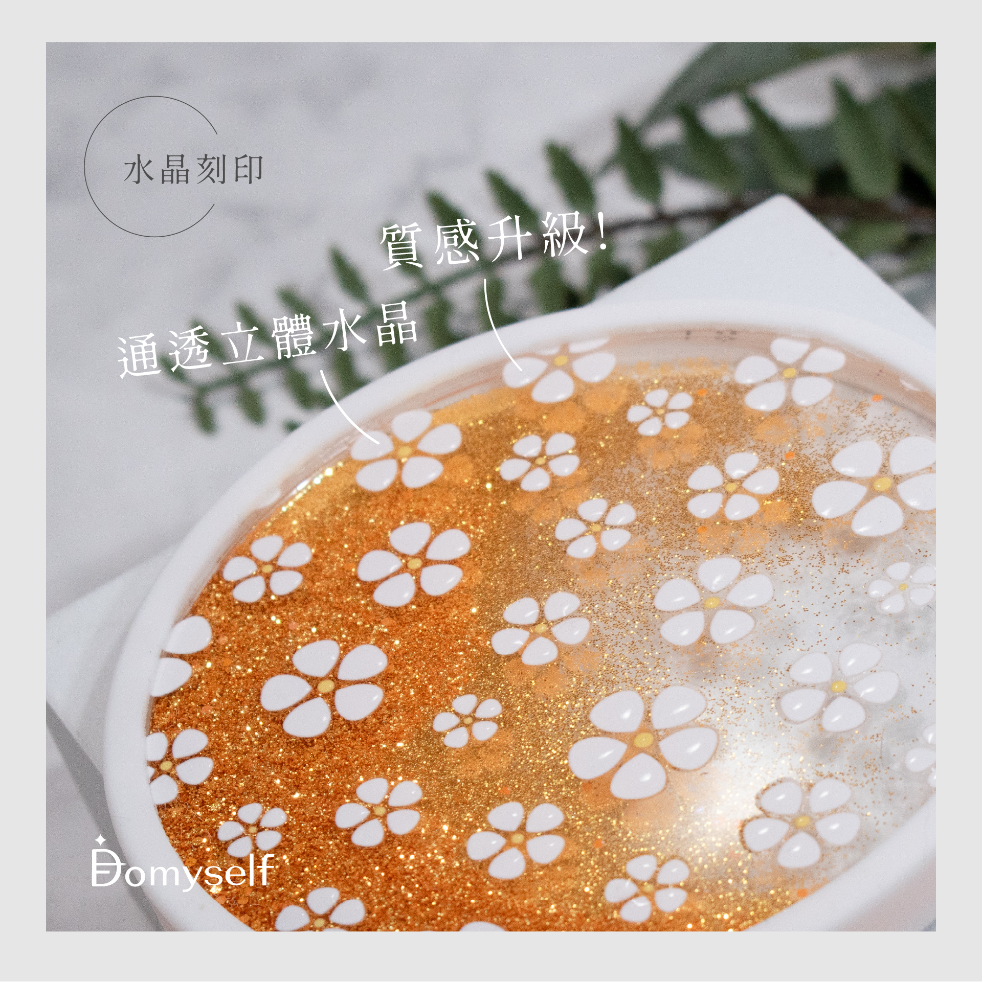 ② 水晶刻印:使用獨家的浮雕技術,讓印刷局部或大面積呈現立體、晶瑩的光感,提高作品質感