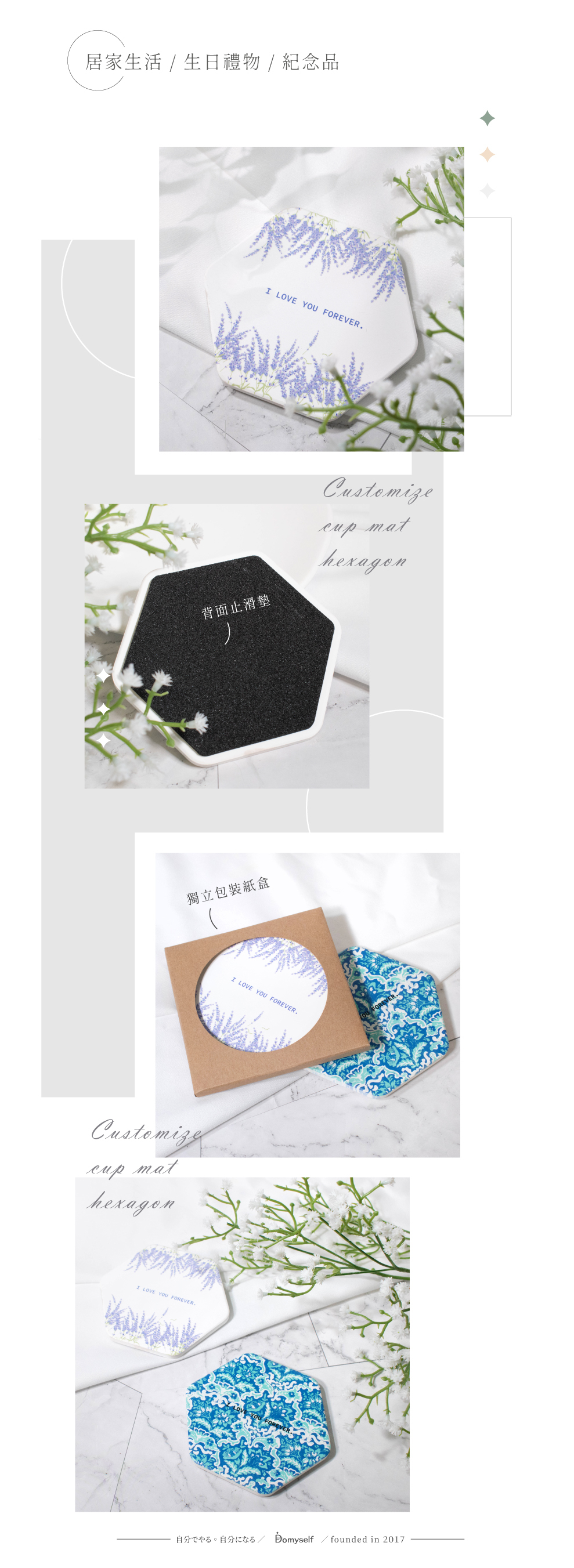 名稱|客製化 ◦ 陶瓷杯墊 | 六角杯墊