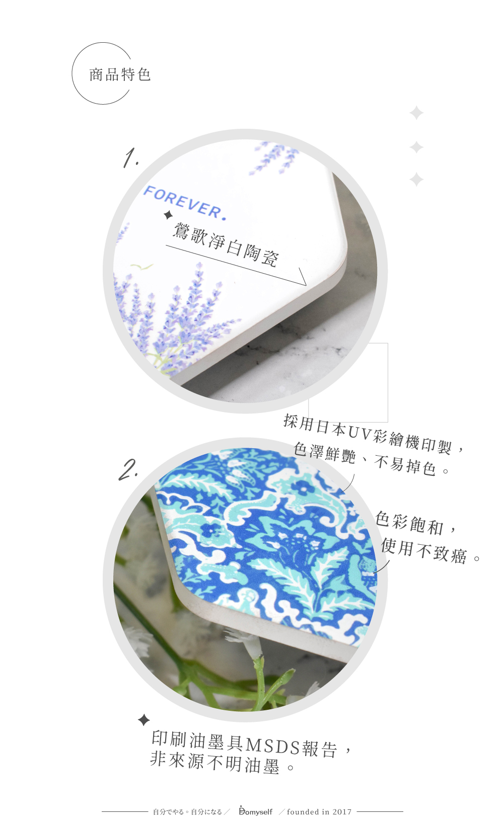 • 杯墊是以高溫窯燒製成,過程中有可能產生少許雜點、因氣泡而產生凹洞等,此為正常現象。