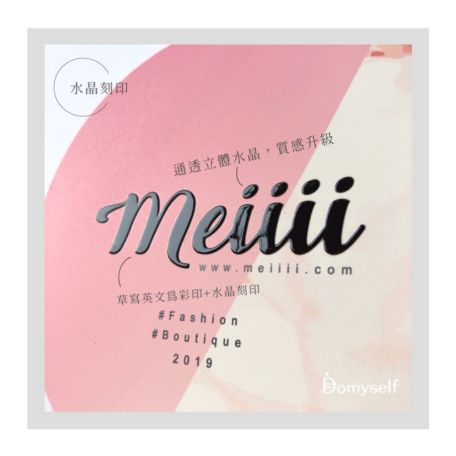 ② 水晶刻印:使用獨家的浮雕技術,讓印刷局部或大面積呈現立體、晶瑩的光感,提高作品質感