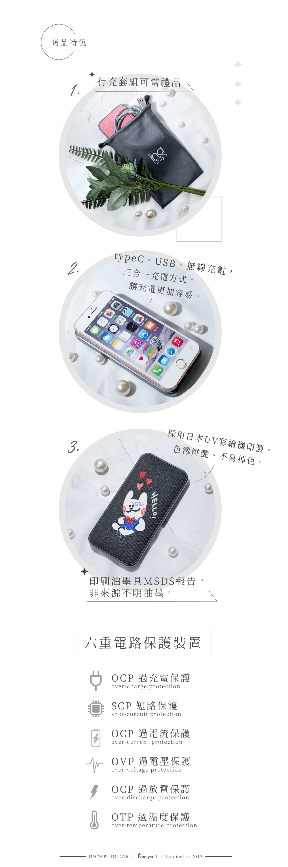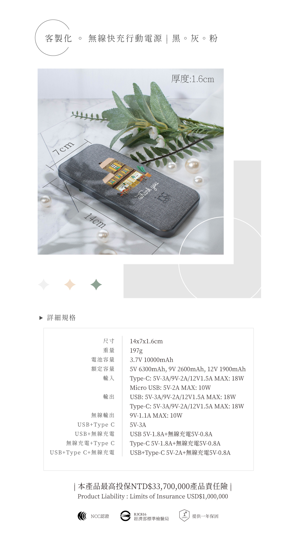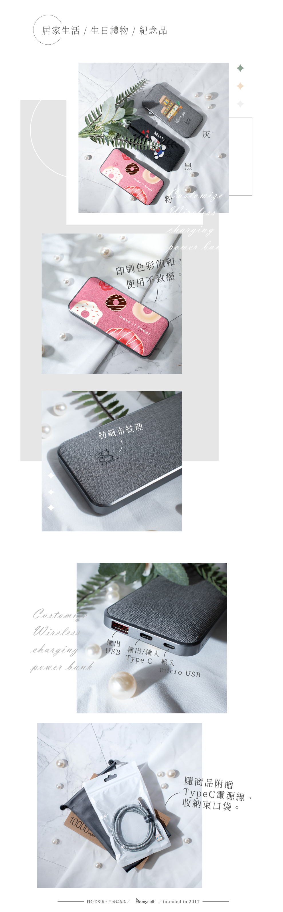 名稱|客製化 ◦ 無線快充行動電源 | 黑。灰。粉