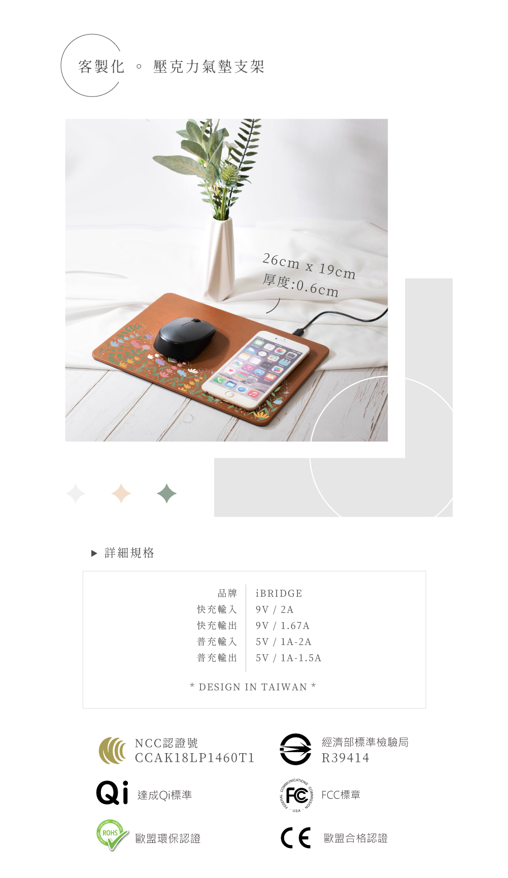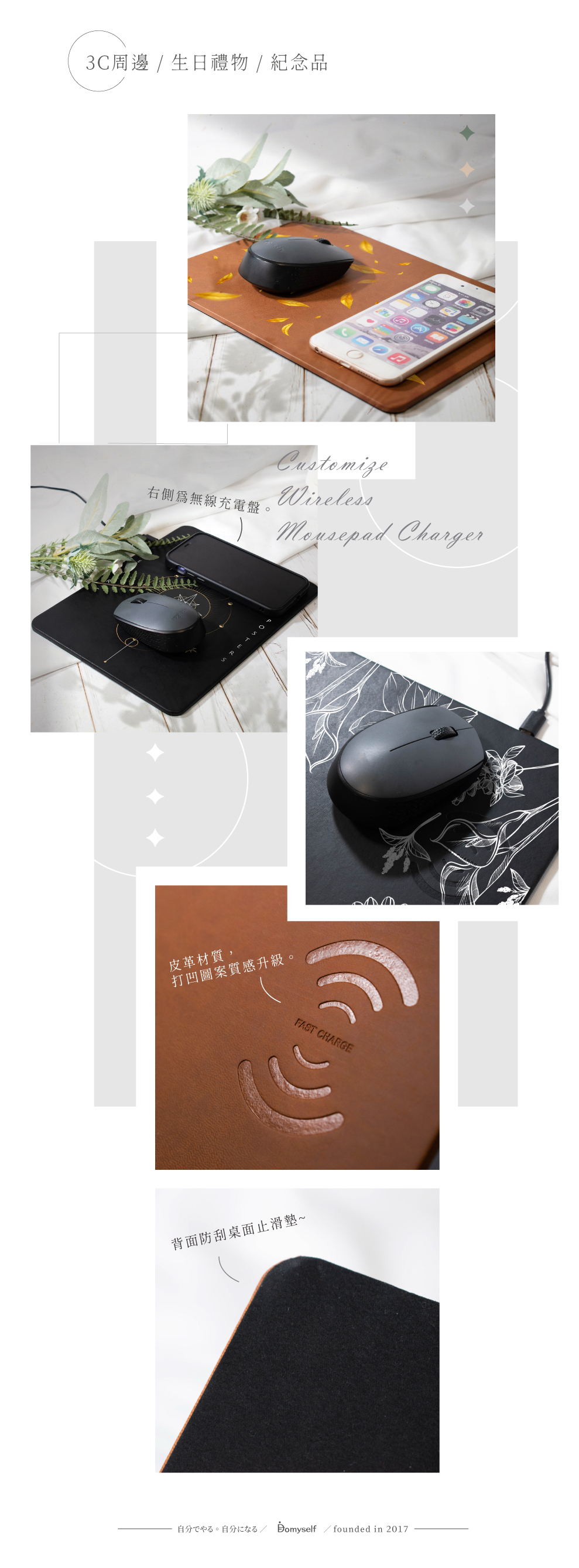 名稱|客製化 ◦ 無線快充皮革滑鼠墊 | 黑 / 棕
