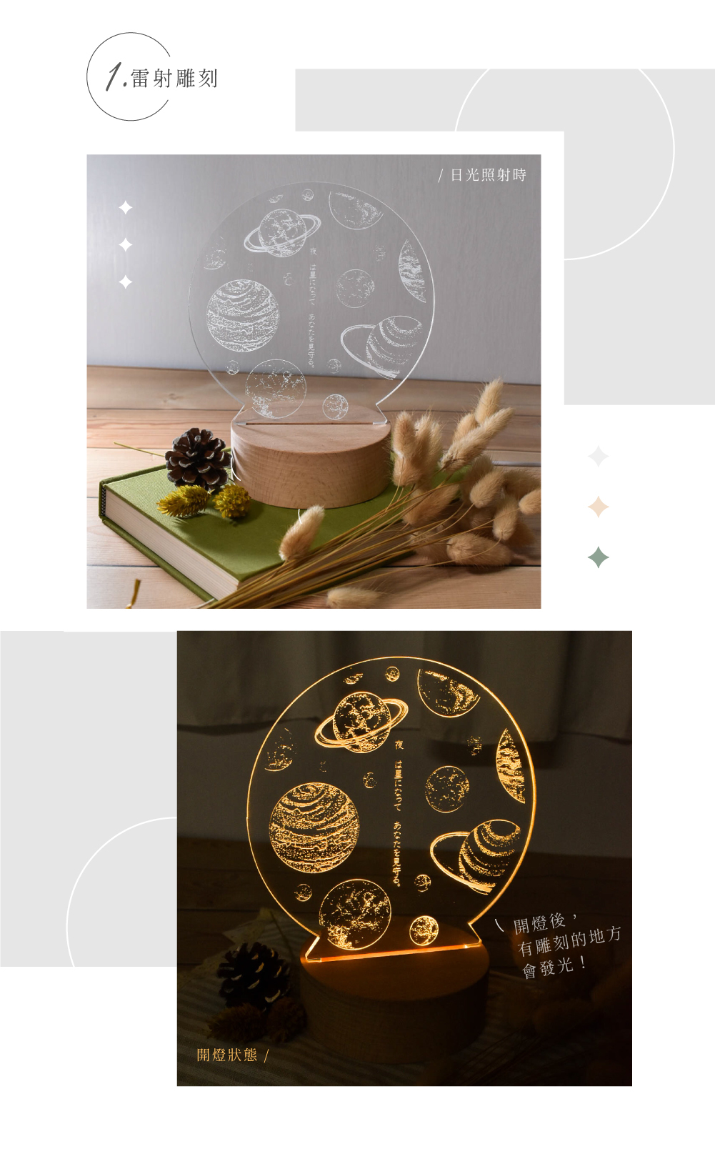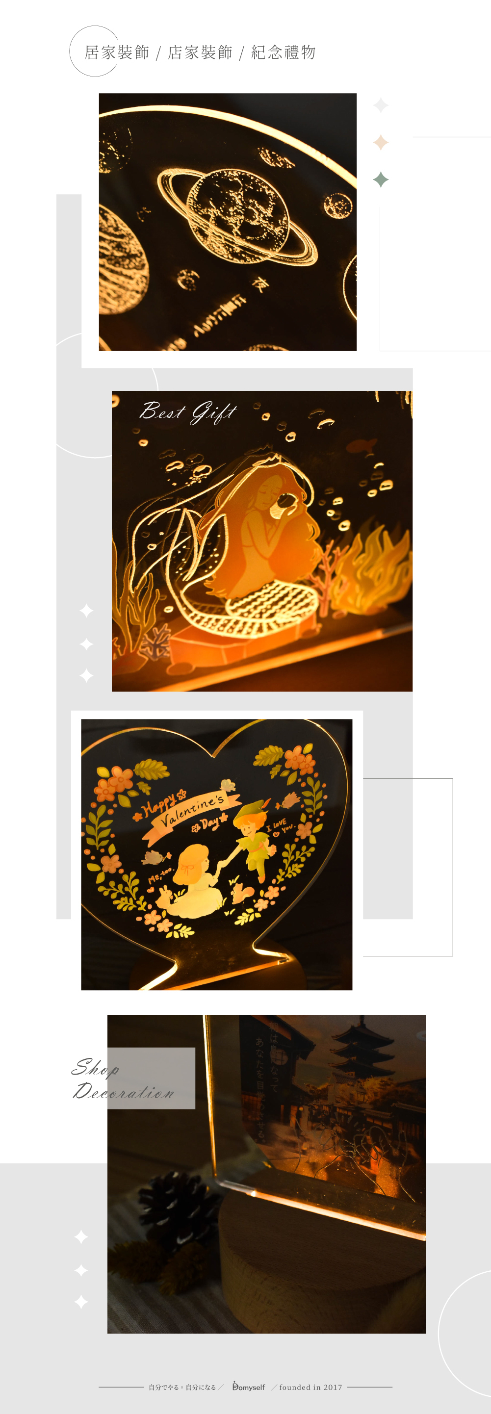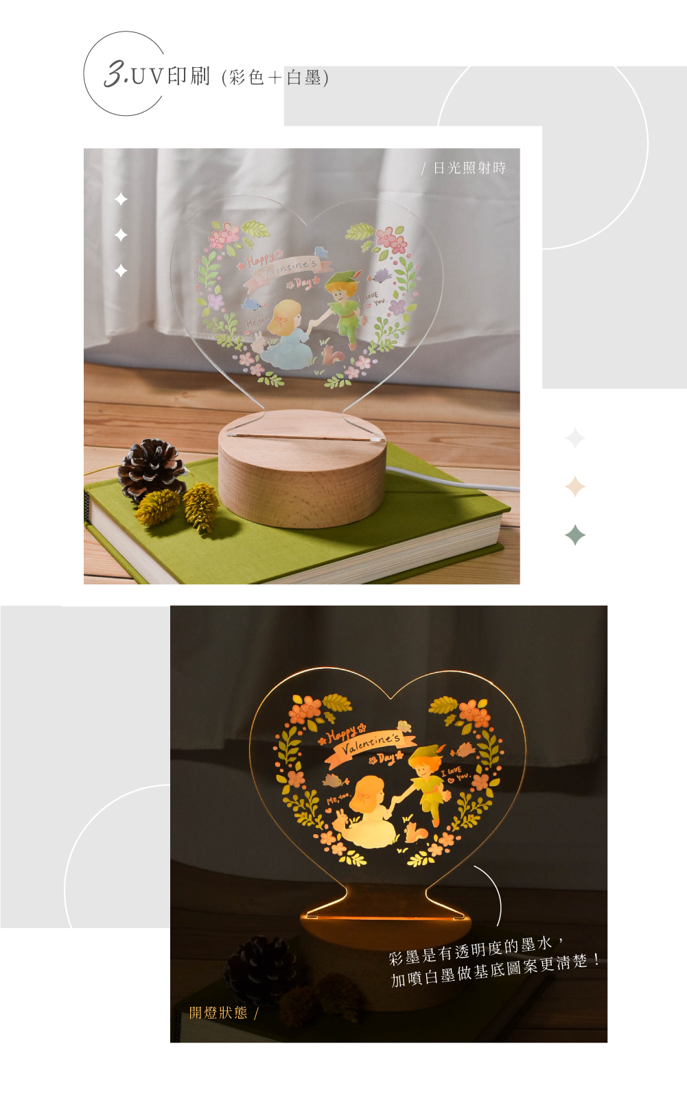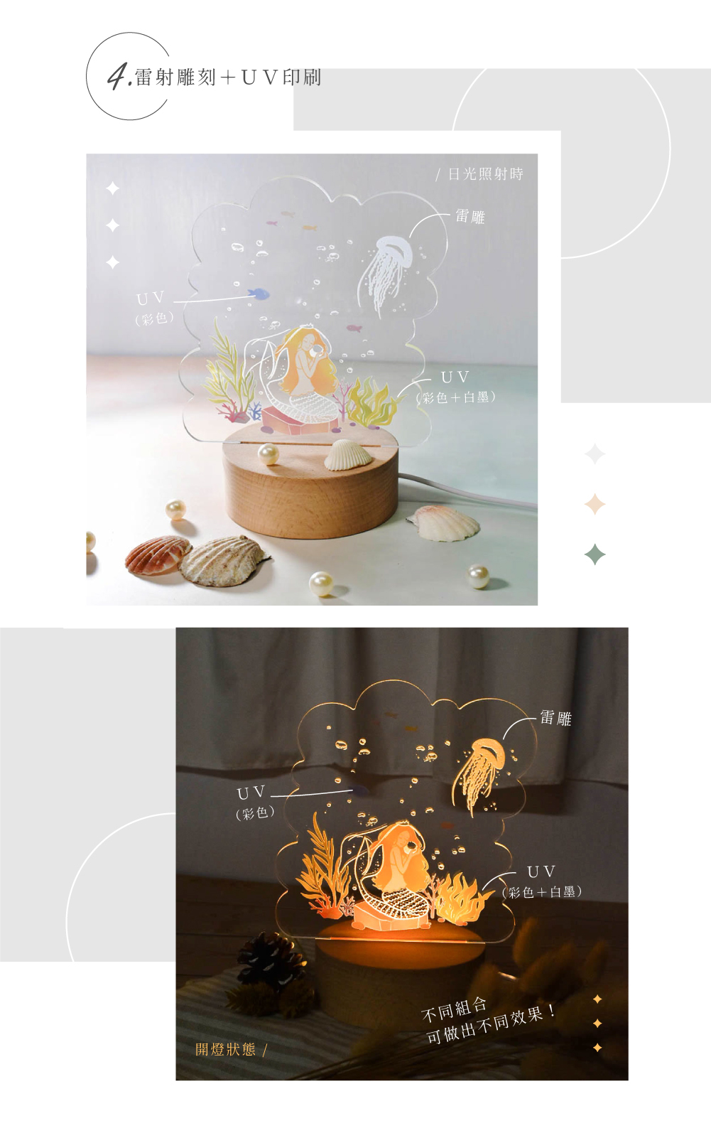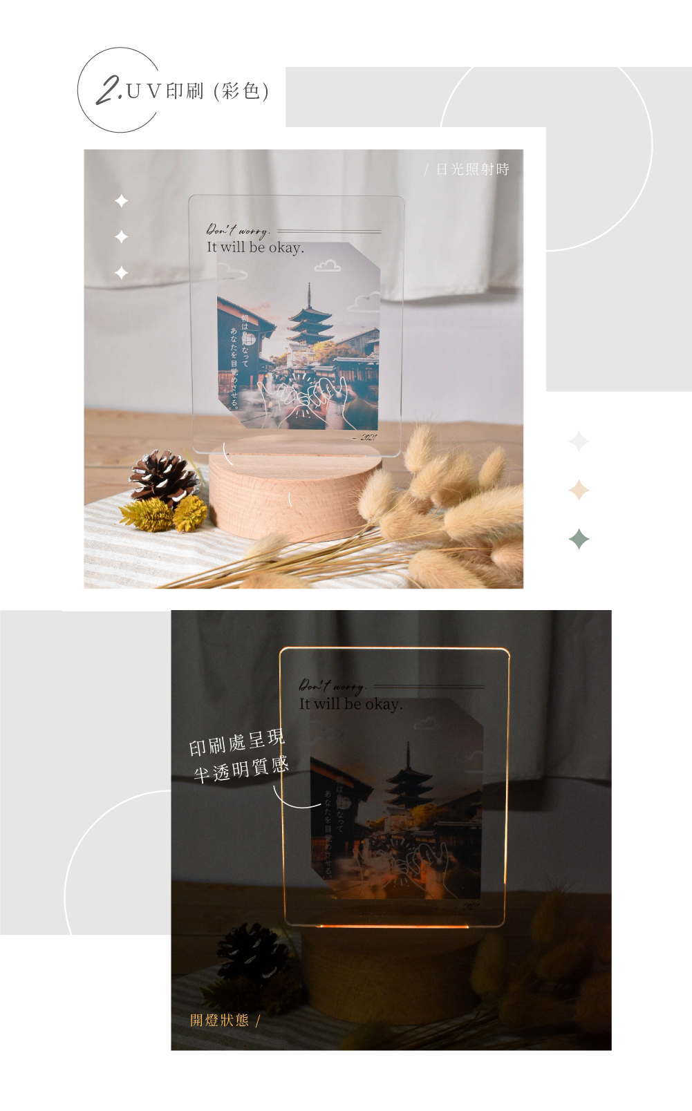 名稱|客製化 ◦ USB壓克力小夜燈|UV印刷 ◦ 彩色/UV印刷 ◦ 彩色+白墨/雷射雕刻