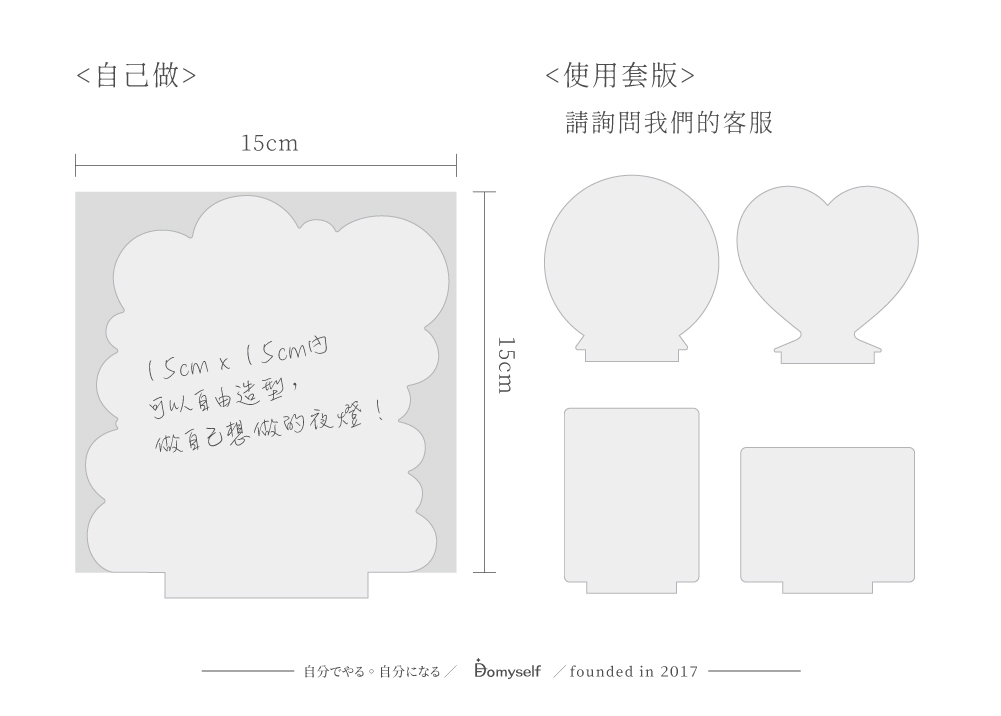 • 我們可提供基本造型刀模:圓形、長方形、愛心型。如有需要請洽客服。