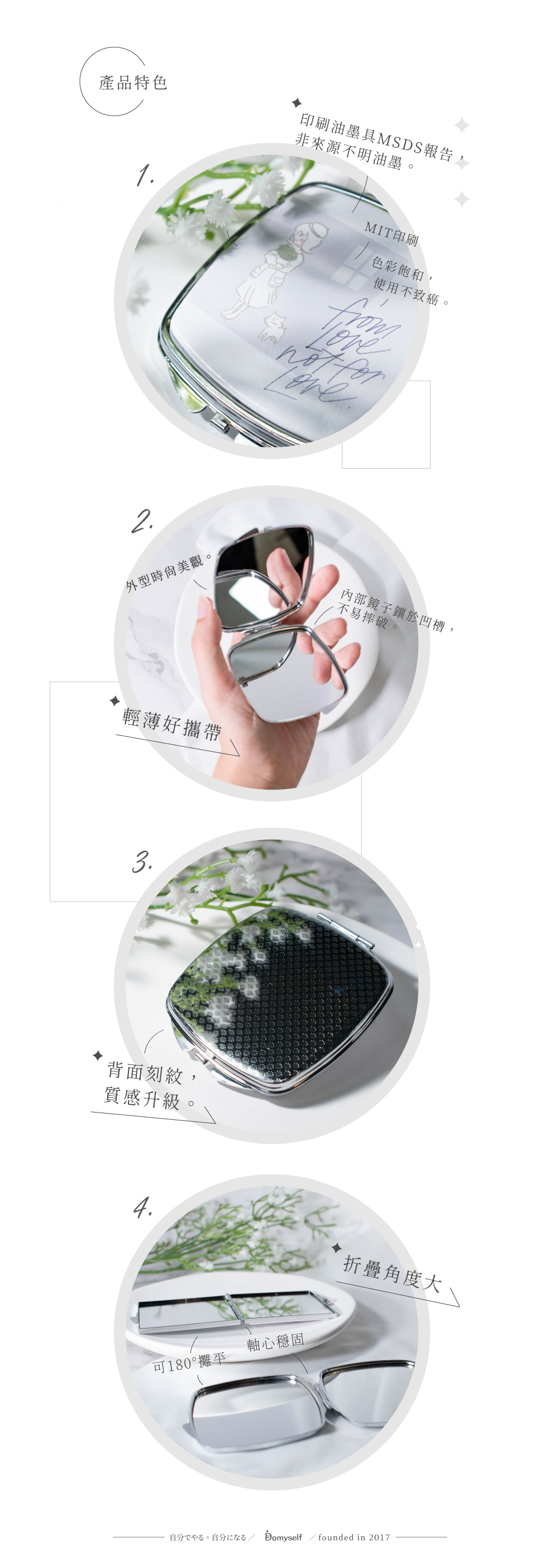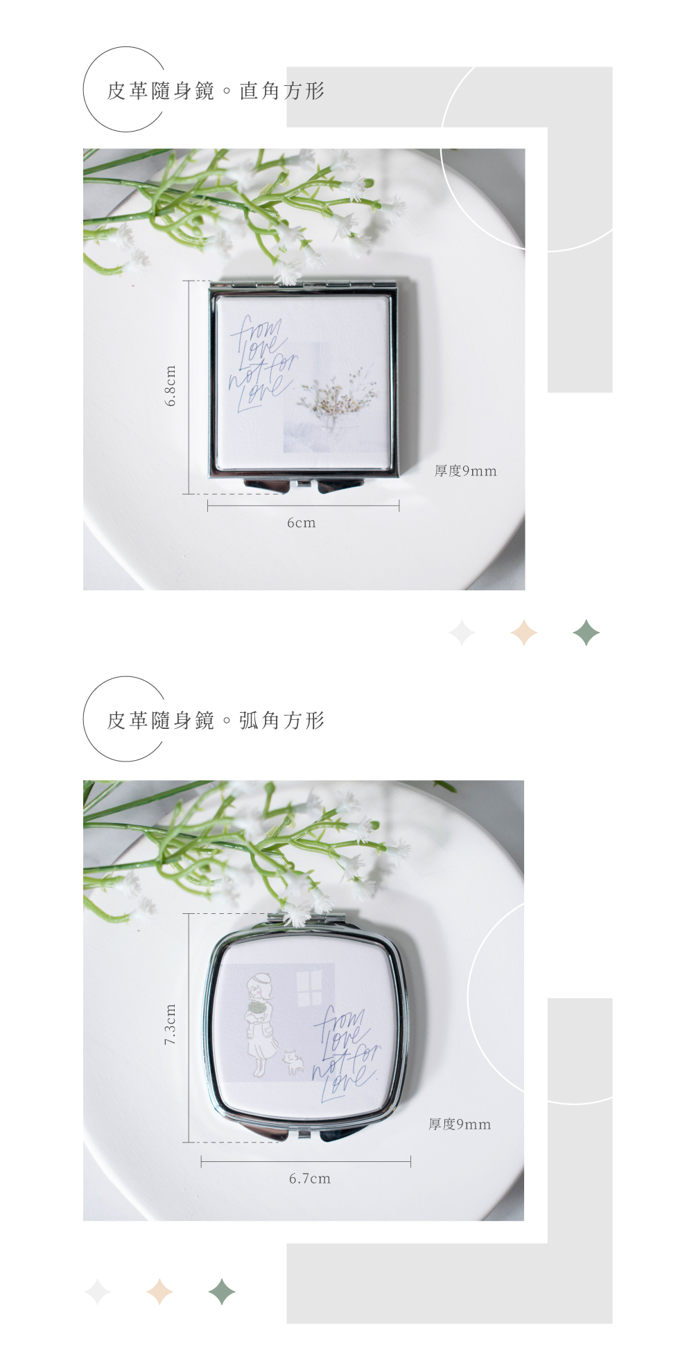 名稱|客製化 ◦ 皮革隨身鏡 │雙鏡面 ◦ 直角方形 / 弧角方形